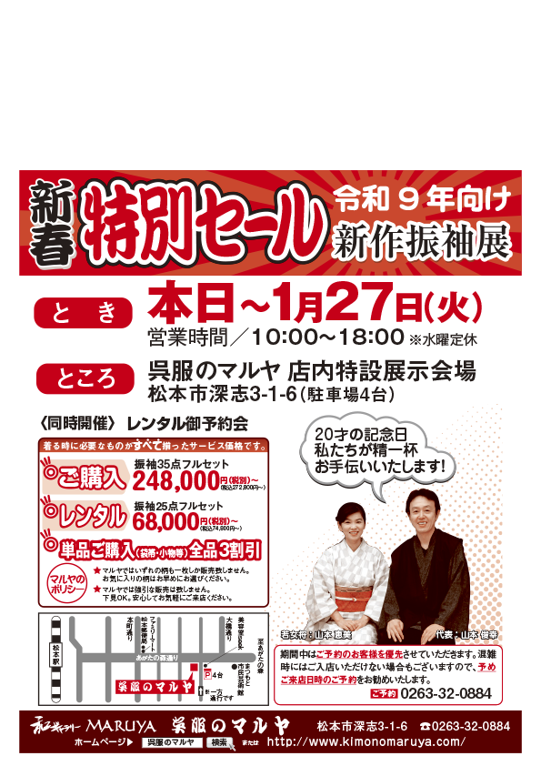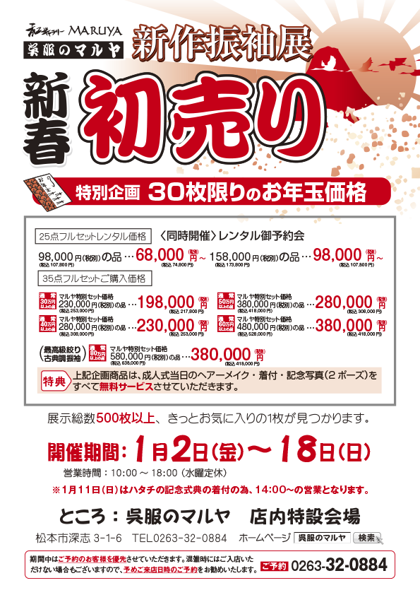 本日~1月27日(火)新春特別セール 令和9年向け新作振袖展