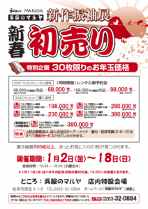 ところ: 呉服のマルヤ店内特設会場 松本市深志3-1-6